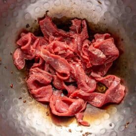 - ¾ pounds (340 g) thinly sliced flank steak