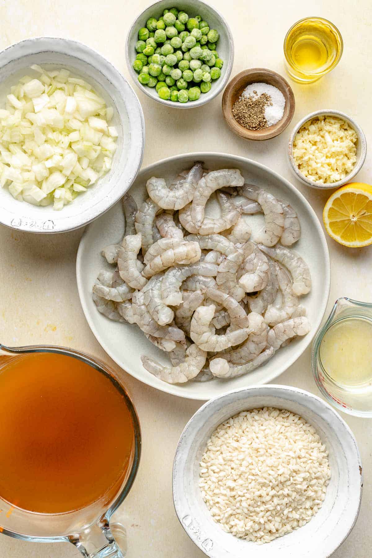Here’s what you’ll need to make this easy shrimp risotto recipe. Be sure to scroll to the recipe card below for precise measurements.