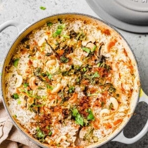 Bold, exciting flavors mix together to create this seriously mouthwatering Vegetable Biryani! This crowd pleasing Indian dish is perfect for both intimate dinners and dinner parties alike. Authentic yet accessible, this vegetable biryani recipe is delightfully easy to make in just over an hour.