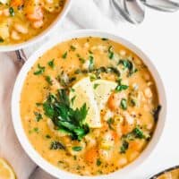 Cozy Vegan White Bean Soup - https://www.tablefortwoblog.com/cozy-vegan-white-bean-soup/