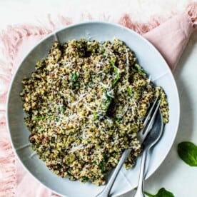 Spinach Pesto Quinoa Bowl - https://www.tablefortwoblog.com/15-minute-spinach-pesto-quinoa-bowl/